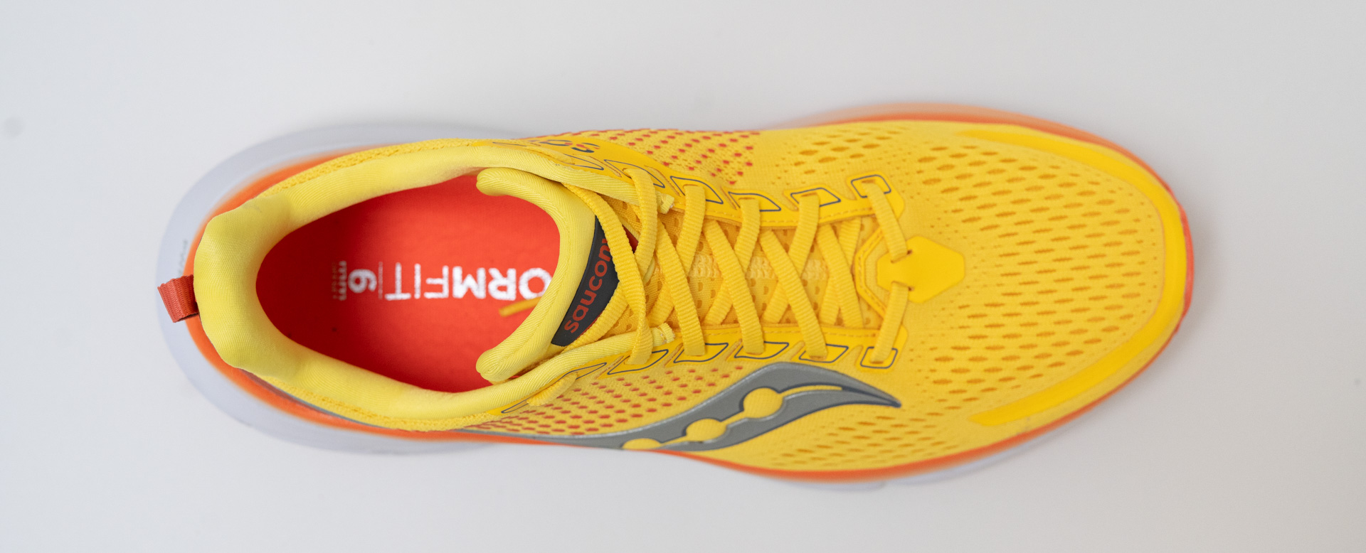 Så hvad er de store nyheder? Sig farvel til det gamle plastikstykke i skoen, der plejede at stoppe din fods rulning indad. Saucony har valgt en ny retning, hvad angår stablitet, de kalder den 'center path technology'. Mere om det senere.