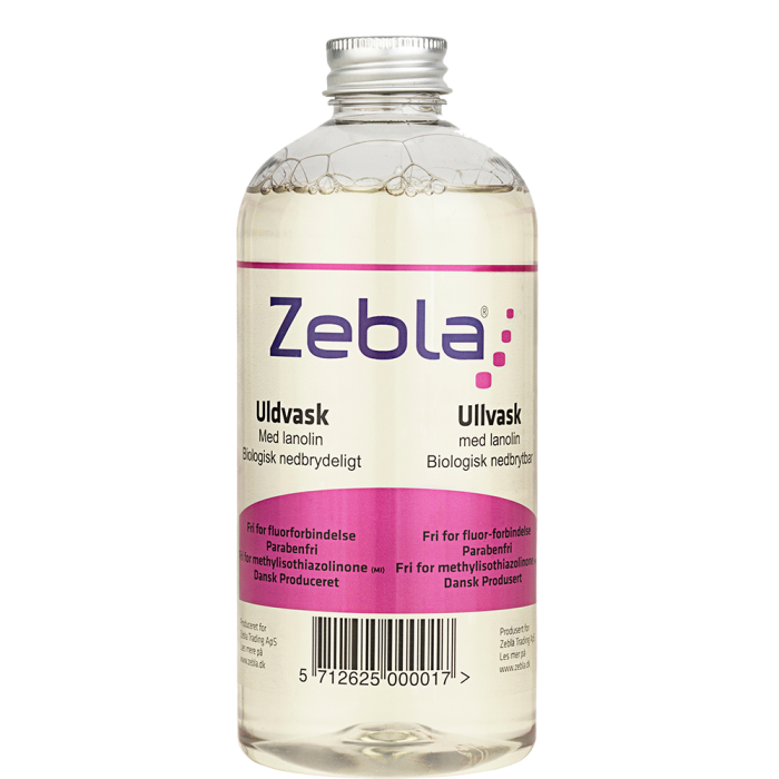 Zebla uldvask er tilsat lanolin, som er med til at bevare uldets åndbarhed og smidige egenskaber. Produktet er meget mildt og sammensat, så det forbedrer svedtransporten i ulden g forbedre varmeevnen. Zebla uldvask egner sig bedst til uldent undertøj og strømper. Ph-værdien er afstemt så der ikke skabes afsmitning under tøjvasken.